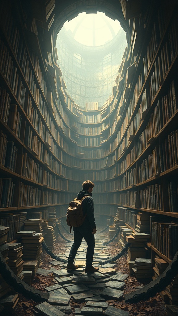 A wanderer stumbles upon a hidden library where each book has the power to transport the reader into the world within its pages, experiencing the story firsthand and altering its outcome with their choices.