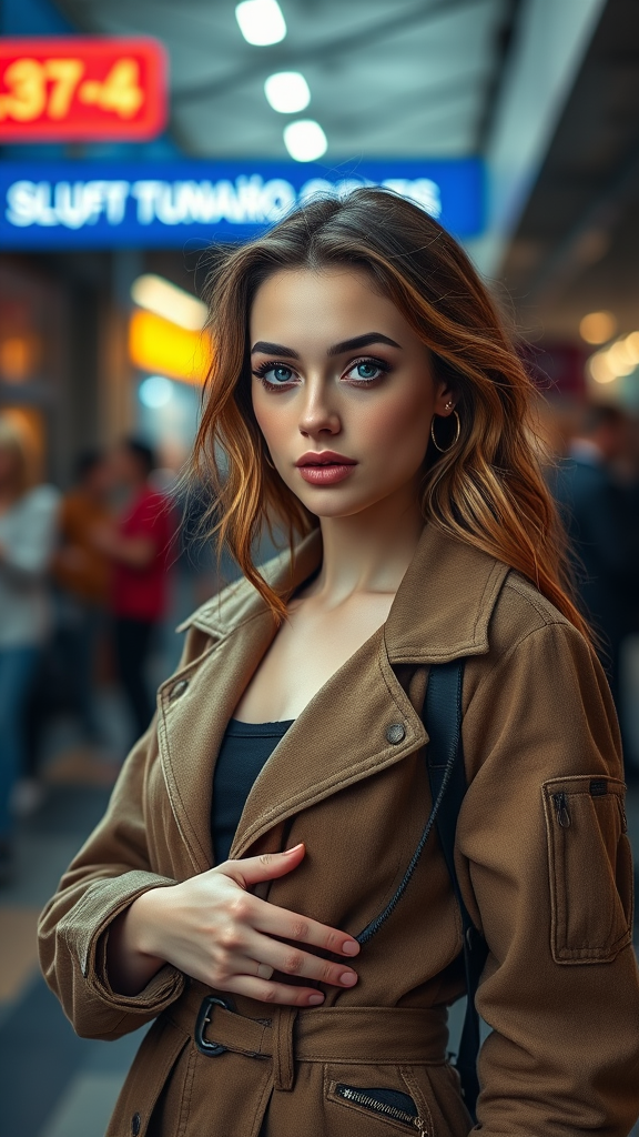 Super-realistic portrait of Nataliya Aleksandrov at a photoshoot location, wearing a chic casual outfit with detailed textures, captured with cinematic lighting and accent lighting using a 35mm lens. The composition features her beautiful head slightly outside the frame, showcasing her stylish pose. The image maintains high quality, sharp resolution, and well-drawn elements, ensuring natural hands and fingers, with balanced exposure that highlights her features elegantly.