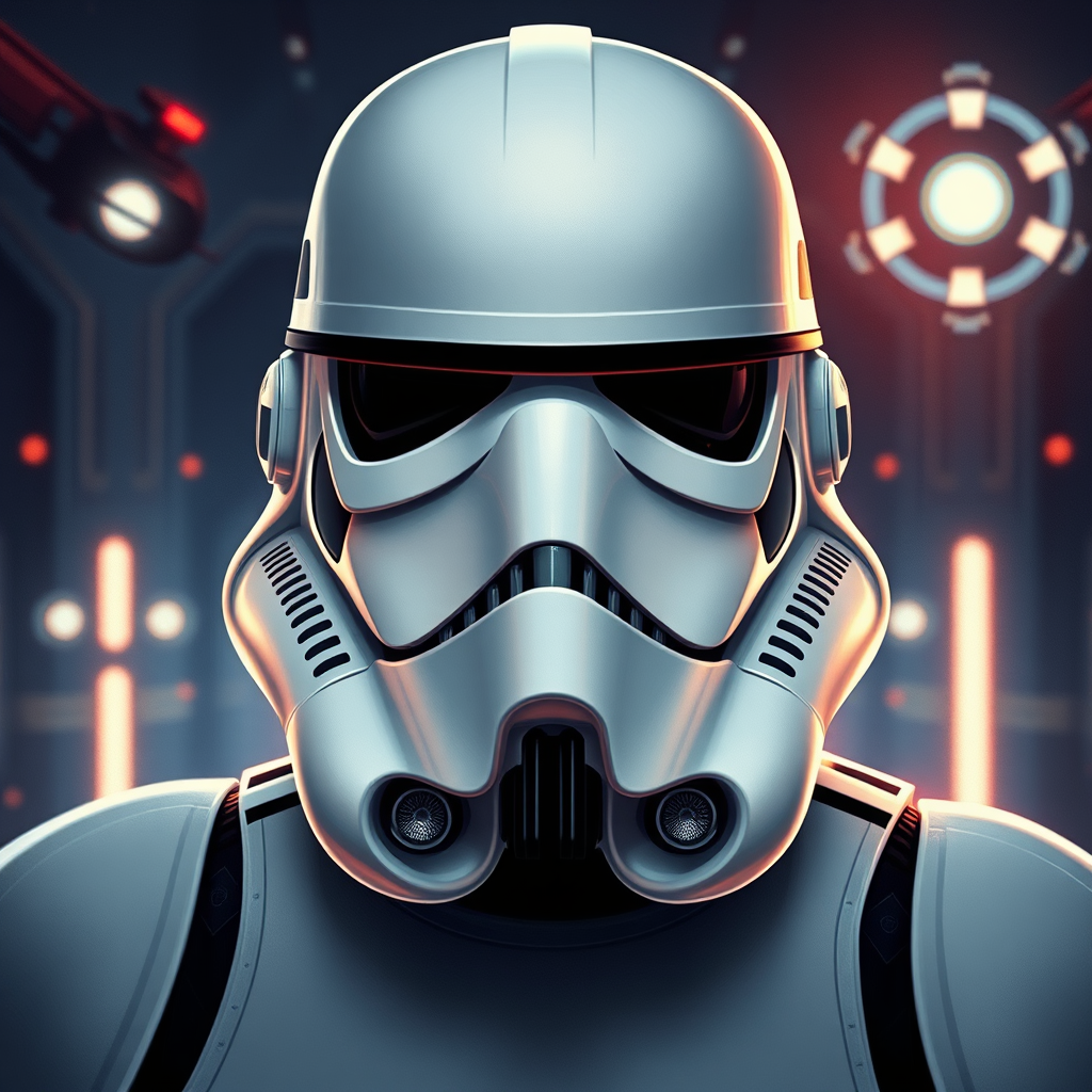 Symmetrical portrait of a stormtrooper from Star Wars, set in a sci-fi universe with glowing lights. The artwork is intricate and elegant, showcasing a highly detailed digital painting. It embodies the style of concept art found on ArtStation, with a smooth and sharp focus. The illustration draws inspiration from the artistic techniques of Artgerm, Greg Rutkowski, and Alphonse Mucha, presenting a refined and captivating visual. Avoiding low-resolution elements, the image is free from text errors, cropping issues, and maintains high quality without jpeg artifacts. The composition ensures accurate anatomy, with well-drawn hands and face, balanced proportions, and no extra or missing limbs. There are no deformities, blurring, or anatomical inaccuracies such as fused fingers or elongated necks. The final piece is a masterful blend of science fiction and artistic elegance.