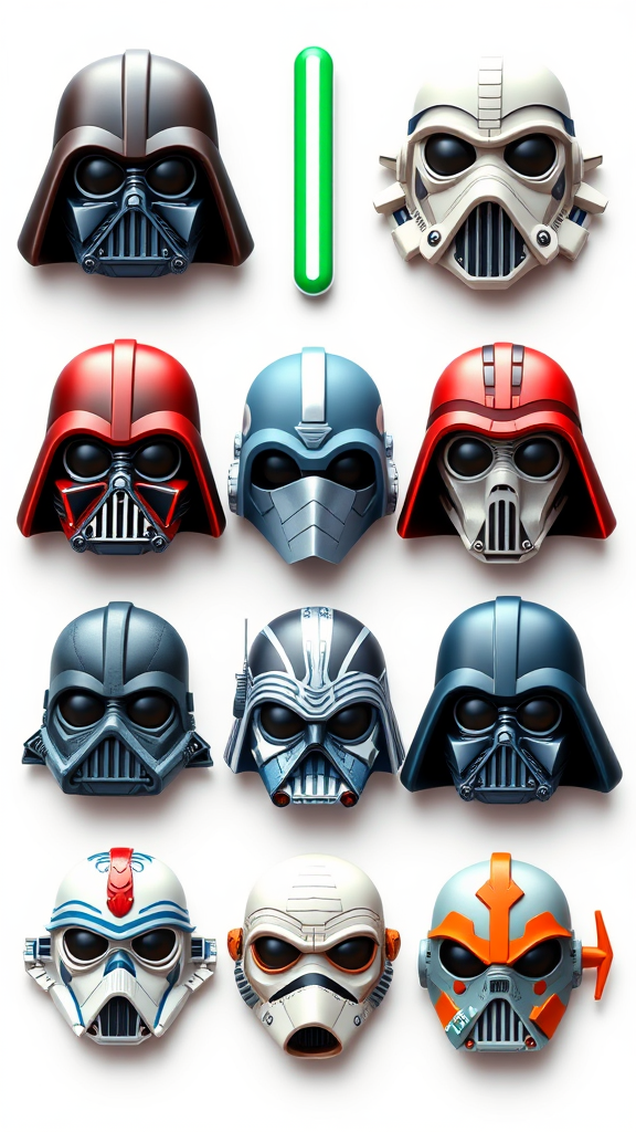 Table layout of eight distinct and detailed Star Wars-themed emojis, showcasing intricate designs and vibrant colors, rendered in ultra-realistic 8k resolution with an octane render style, featuring a diverse array of characters, spaceships, and iconic symbols from the Star Wars universe, each emoji capturing the essence and personality of the original elements with a touch of creative flair, ensuring a visually stunning and engaging presentation while maintaining the familiarity of beloved Star Wars motifs.