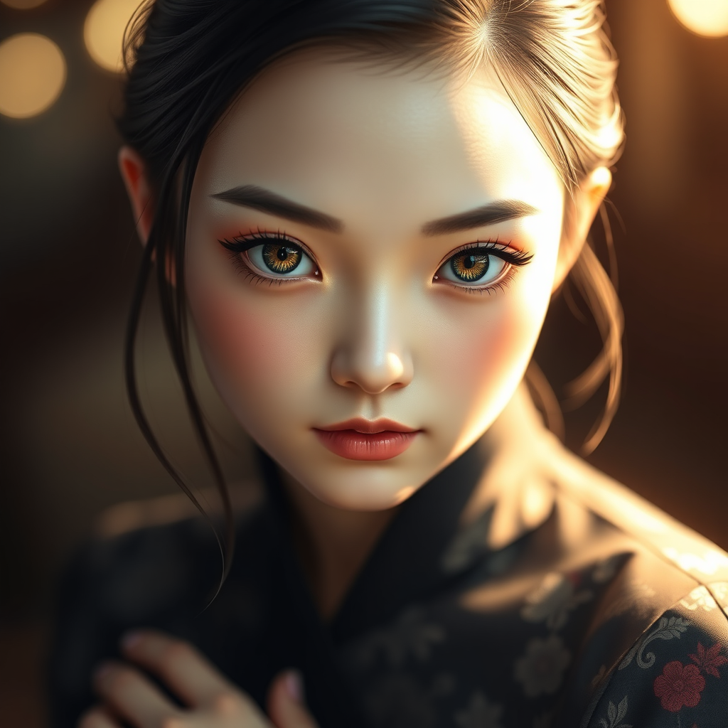 Tanaka Mamimi-inspired character, photorealistic, elegant composition, single woman, full-body portrayal, refined facial features, intricately detailed eyes, vivid pupils, realistic gaze, soft facial illumination, lifelike skin texture, firm complexion, exceptionally detailed, with a sense of depth and soft bokeh background.