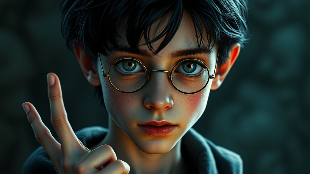 teen harry potter, young boy with skinny build and light skin, intricate details and ultra quality digital art, black hair, fantasy ambiance with cinematic lighting, highly detailed face with duplicated and slightly malformed eyes, unique hands with extra fingers, slight imperfections in anatomy creating an otherworldly appearance, subtle jpeg artifacts add to the fantasy feel, hint of feminine features adding a mysterious aura.