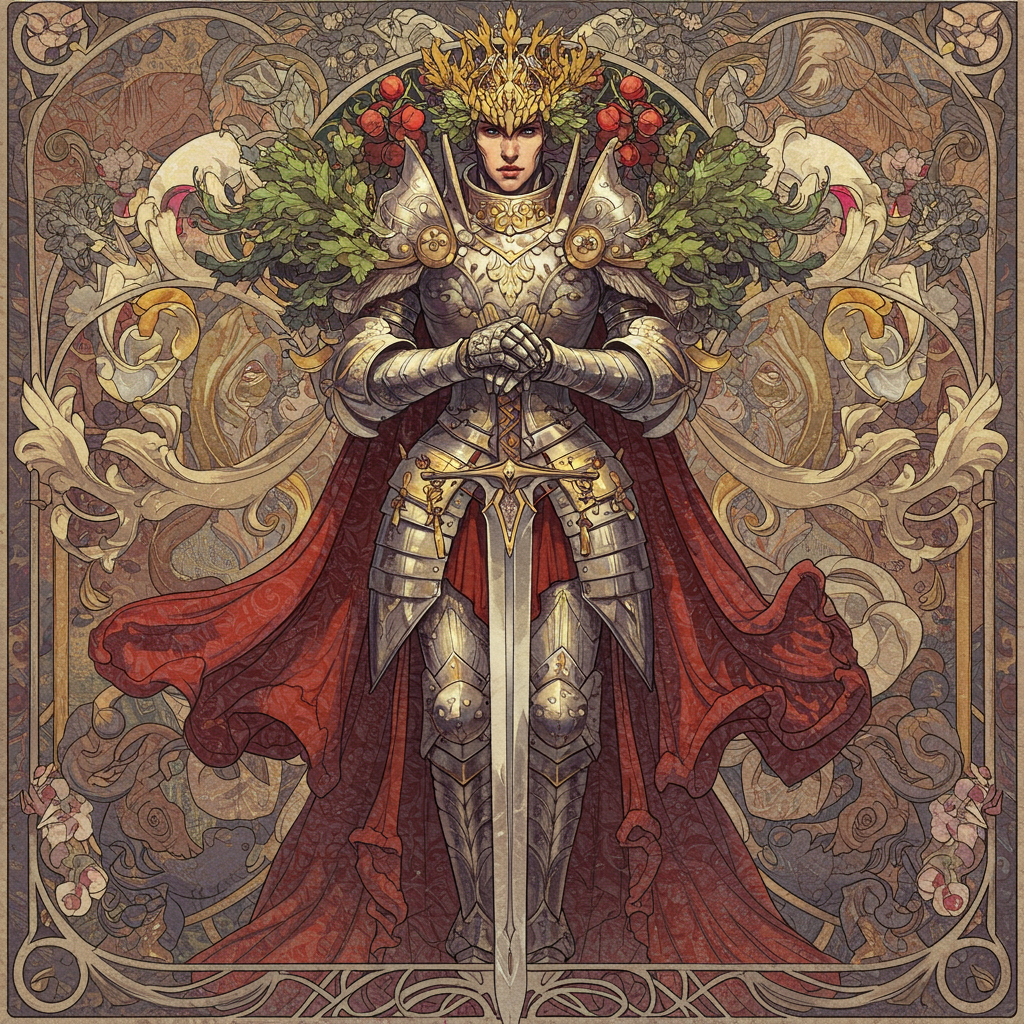 The artwork is a breathtaking amalgamation of diverse styles and techniques, blending elements of Art Nouveau, Baroque, and Rococo. The flowing lines and natural motifs of Art Nouveau are visible in the intricate design of the Princess's armor, while the lavishness and splendor of Baroque and Rococo come to life in the grandiose composition.