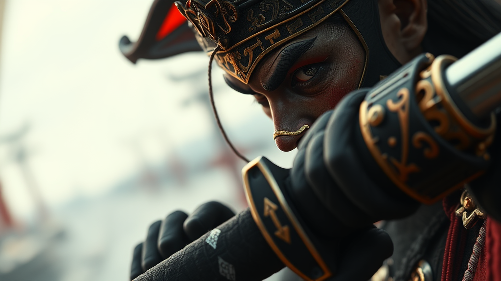 The dragonborn's swords in neo-traditional Japanese style, inspired by Magali Villeneuve, showcasing close-up intensity and an urban, edgy vibe. Influenced by Xiaofei Yue, featuring dark crimson and orange hues, with elements of traincore aesthetics, highlighting intricate details and a backdrop of urban grit. The scene is infused with a sense of dynamic energy and a touch of mystique, maintaining the core essence while adding a layer of modern flourish and cultural fusion.