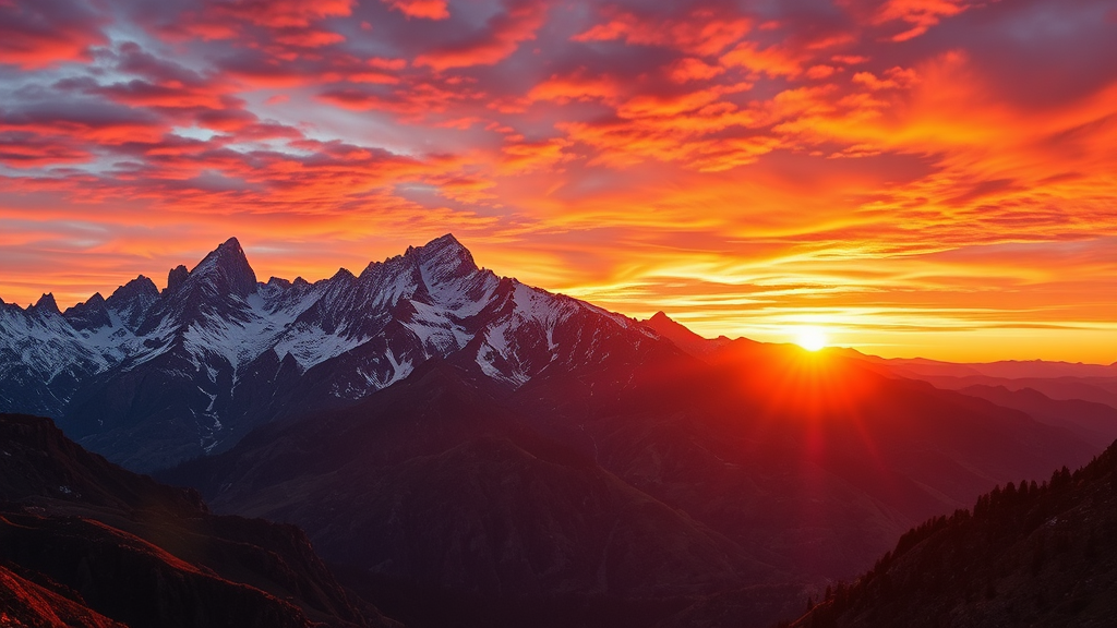 The fiery passion of a sunset splashed across mountain peaks, where love ignites under a spicy sky.