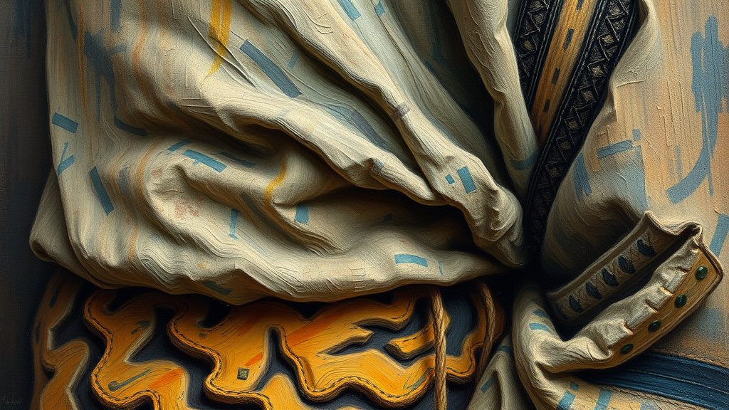 The intricate textures captivate with their richness and variety, as the brushwork instills a profound sense of depth and dimensionality that beckons you further into the painting. The folds of the individual's garment are meticulously detailed, with every stitch and seam tenderly crafted and brought to life.