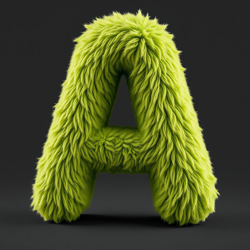 The letter A crafted with a rich avocado texture, featuring a fluffy 3D design, created using Blender and Unreal Engine, showcasing high quality with soft volumetric lighting, and subtle creative embellishments for added visual interest.