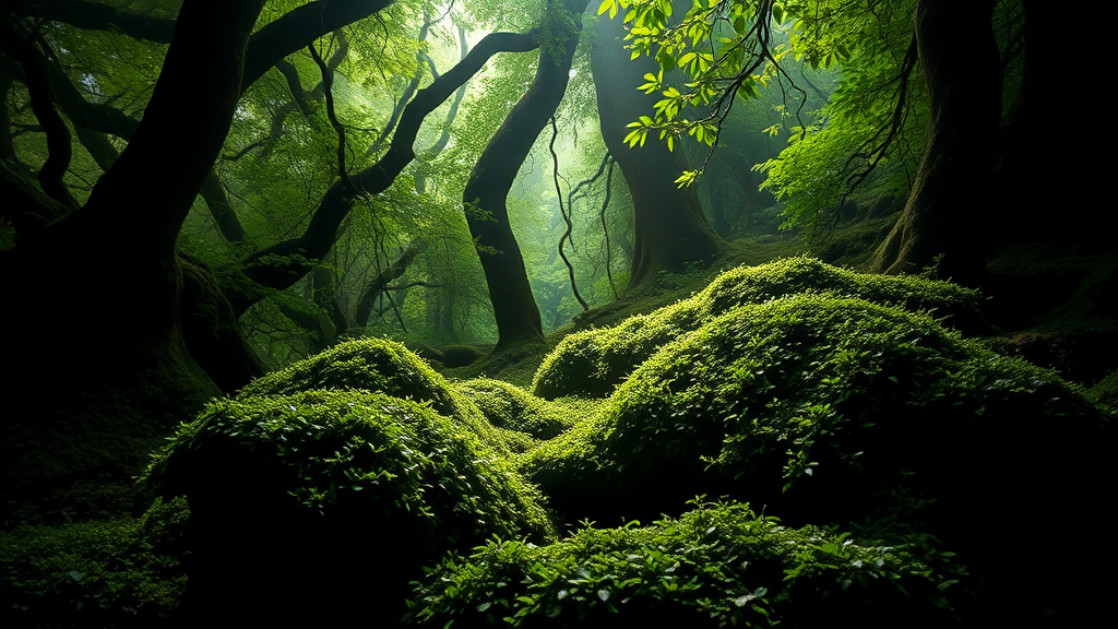 The "Moss Bolt" concept presents a natural and lush ambiance, where the environment seamlessly merges with an earthy, vibrant feel. The color palette features a deep jet black background that contrasts beautifully with vivid green accents reminiscent of a forest floor. The materials and textures are dominated by a mossy surface, providing a soft and plant-like texture that feels dense and tactile. Lighting is simulated through an overhead softbox, creating the effect of gentle, natural daylight filtering through leaves. The overall mood is serene, mystical, and grounded, reminiscent of a hidden grove bursting with life.