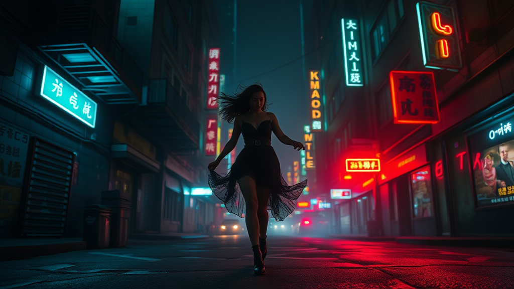 The neon lights flickered erratically in the late-night urban haze, casting shadows across a city that pulsed with the haunting allure of secrets untold. A mysterious figure danced through the labyrinth of forgotten streets, her presence an electric spark against the engulfing darkness. She danced to the rhythms of the night, a rebellious spirit defying the silence that threatened to consume her. Her very essence was a juxtaposition of vulnerability and strength, a radiant force navigating the chaos of a world on the brink of oblivion. She was the embodiment of resilience, her story woven into the tapestry of a city clinging desperately to the echoes of its own heartbeats.