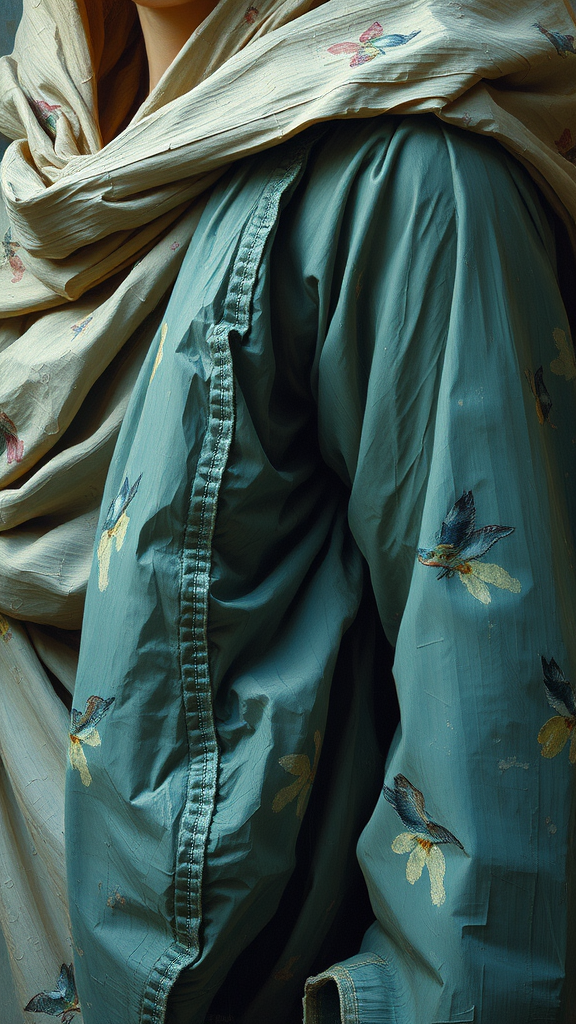 The surfaces are lush and diverse, as the brushwork establishes a feeling of depth and dimension that invites you further into the painting. The drapery of the figure's attire is meticulously crafted, with each stitch and fold delicately depicted.
