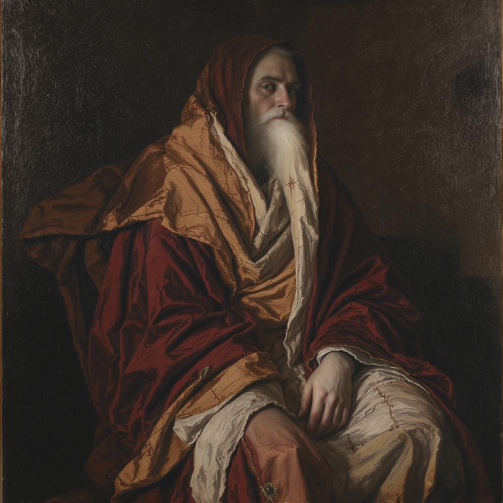 The textures are lush and multifaceted, with the brushwork imparting a profound sense of depth and dimension that irresistibly invites you further into the artwork. The drapery of the individual's attire is meticulously detailed, with each stitch and seam thoughtfully and intricately depicted.