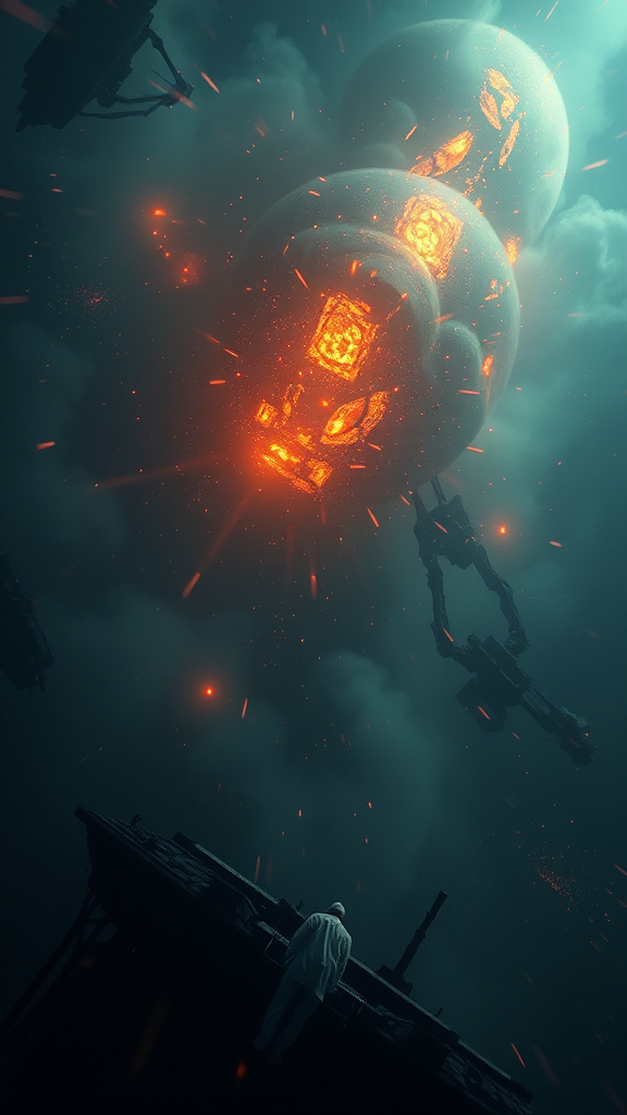 The true danger lies not in AI's destruction, but in its capacity to drive humanity into madness, captivating art with trending designs on ArtStation, blending matte painting with animation lighting, creating a mesmerizing depth of field. The piece is rendered in ultra-detail, with an aspect ratio of 16:16, conveying a vision both hauntingly beautiful and unsettling, where reality blurs into the surreal, invoking contemplation and awe.
