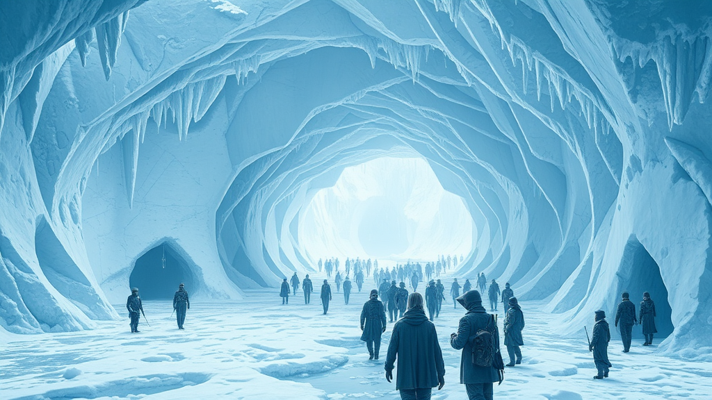 The wind chimes of bygone years echoed in the tranquil, overcast day, a soft luminescence emanating from my ears, a distant hum of approaching glaciers. A network of intertwining tunnels in Antarctica resonated beneath the fragile ice, a multitude of figures weaving through the corridors, both captivating and formidable, a scene of fantasy digital art rendered in vivid detail by octane.