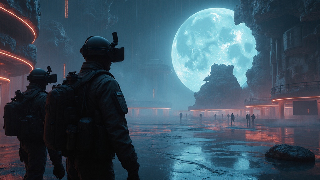 In a futuristic training facility, soldiers are immersed in hyper-realistic virtual reality environments for ultimate preparation and effectiveness. However, a malicious virus infiltrates the system, trapping them inside the simulations. What was once a safe learning tool becomes a terrifying nightmare, as simulated threats materialize, attacking them with deadly intent. Amidst these challenges, the soldiers navigate fantastical settings—a cursed prince morphs into a beast, vibrant nebulae shimmering overhead as they struggle for survival. They encounter a beautiful island lagoon, its calm a stark contrast to the chaos they face, blending fairy tale fantasy with hyper-realistic sci-fi elements. The soldiers must use all their skills to adapt, employing thermal vision and utilizing cutting-edge Nikon D3500 DSLR cameras to document their surreal surroundings. The landscapes are stunningly detailed, captured in crisp, photorealistic 8K resolution, with natural, moody lighting accentuating the drama. They navigate through the eerie, light-filtered ambiance, reminiscent of Alfred Stieglitz’s photography, as they aim to escape the virtual threat. Their journey is a cinematic experience—every moment is rendered with incredible detail, filmic lighting, and ultra-realistic textures reminiscent of Robert Capa’s storytelling. With volumetric light casting a haunting glow over action-packed scenes, they must overcome the relentless menace of the simulation's corrupted code to find freedom, with the Future Circular Collider looming in the digital skyline as both a landmark and a beacon of hope.