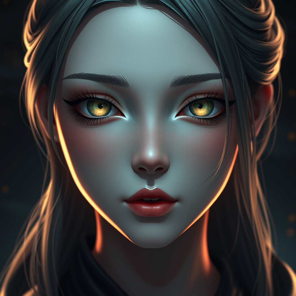 Tranquil expression, exquisite facial details, highly detailed eyes, flawless, radiant skin, anime and manga inspired digital art with glowing effects, meticulously hand-drawn, rendered using Octane Render, Cinema 4D, and Blender, set in a dark, atmospheric environment with ultra-high definition, cinematic allure, sharp focus, and hyperrealistic depth of field. Masterpiece level with vibrant colors and a model-like appearance, evoking the stylistic essence of a majestic oil painting by Ed Blinkey, Atey Ghailan, Studio Ghibli, Jeremy Mann, Greg Manchess, and Antonio Moro. Trending on ArtStation and CGSociety, the artwork is intricately detailed, dramatic, and photorealistic, reminiscent of art by Midjourney and Greg Rutkowski, in 16k resolution with HDR quality.