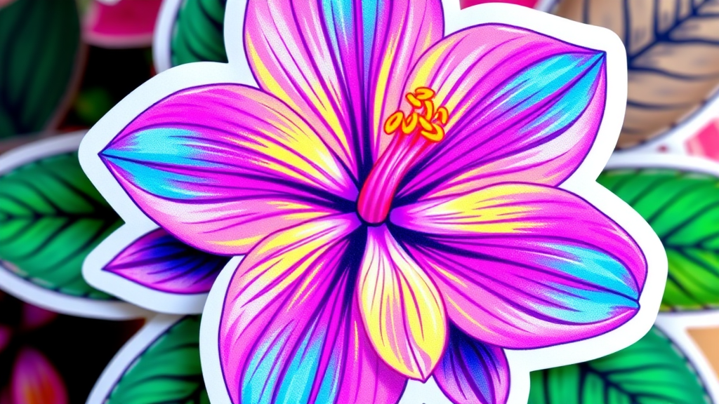 Tropical flower sticker, infused with fluorescent hues, inspired by the vibrant artistry of Frida Kahlo, vibrant RGB colors, avoiding drop shadows, with high quality and intricate detailing.