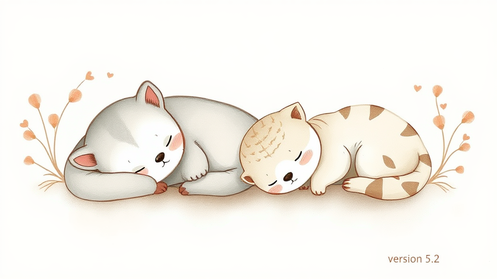 UI charming illustration, cute animals napping, peace, tranquility, watercolor tones, soft pastel palette, earthy khaki background, version 5.2, raw aesthetic style