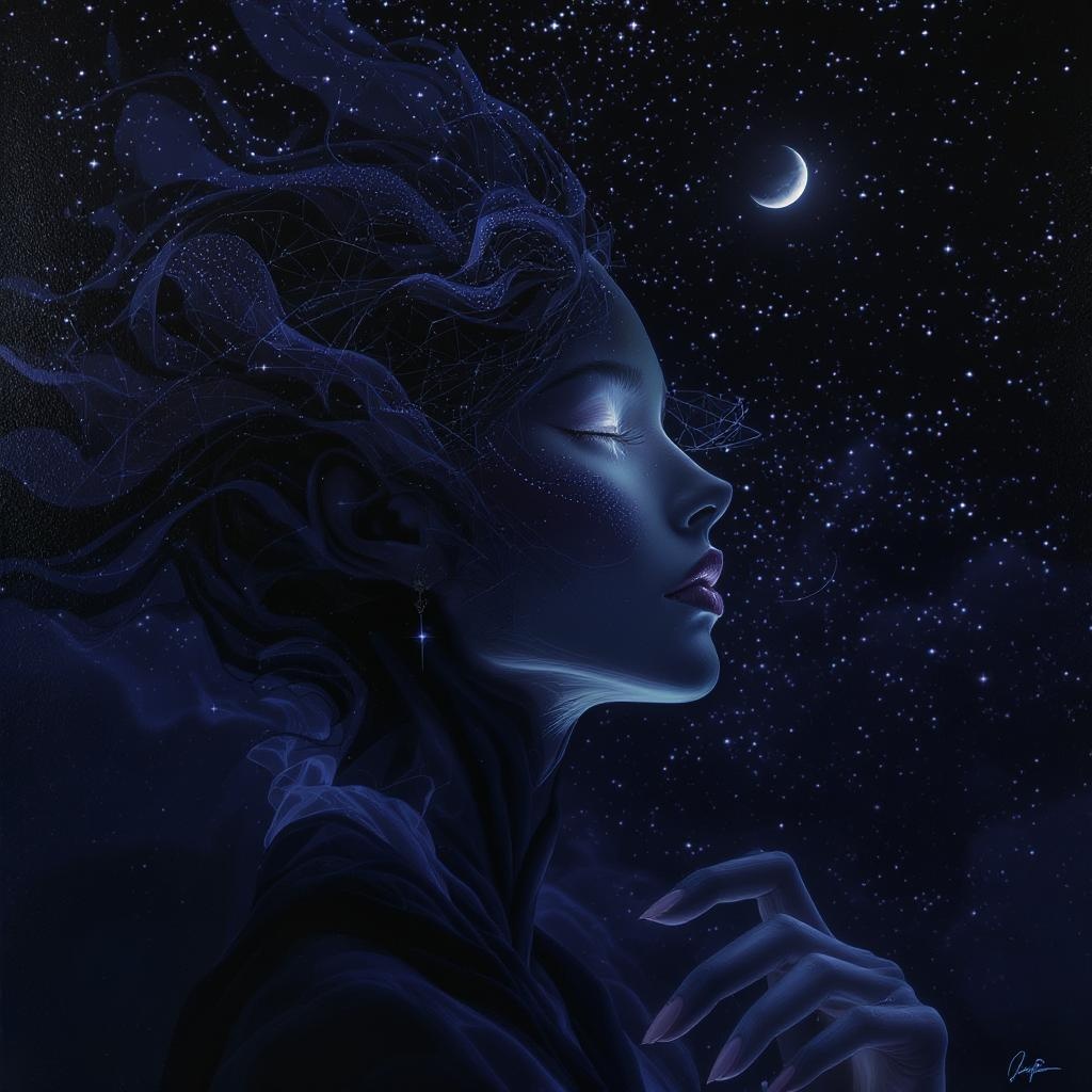 Ultra detailed artistic photography, midnight aura, starlit sky, captivating face, ethereal glow, dreamlike, luminous, backlit, elegance, shimmer, shadows, oil painting effect, smooth brush strokes, ultra high definition, 8k, unreal engine 5, ultra sharp focus, art by Alberto Seveso, Artgerm, Loish, San Francisco, intricate masterpiece, mysterious, cinematic matte painting poster, golden ratio, trending on CGSociety, complex, epic, trending on ArtStation, by Artgerm, H. R. Giger, and Beksinski, highly detailed, vibrant, production cinematic character render, ultra high quality.