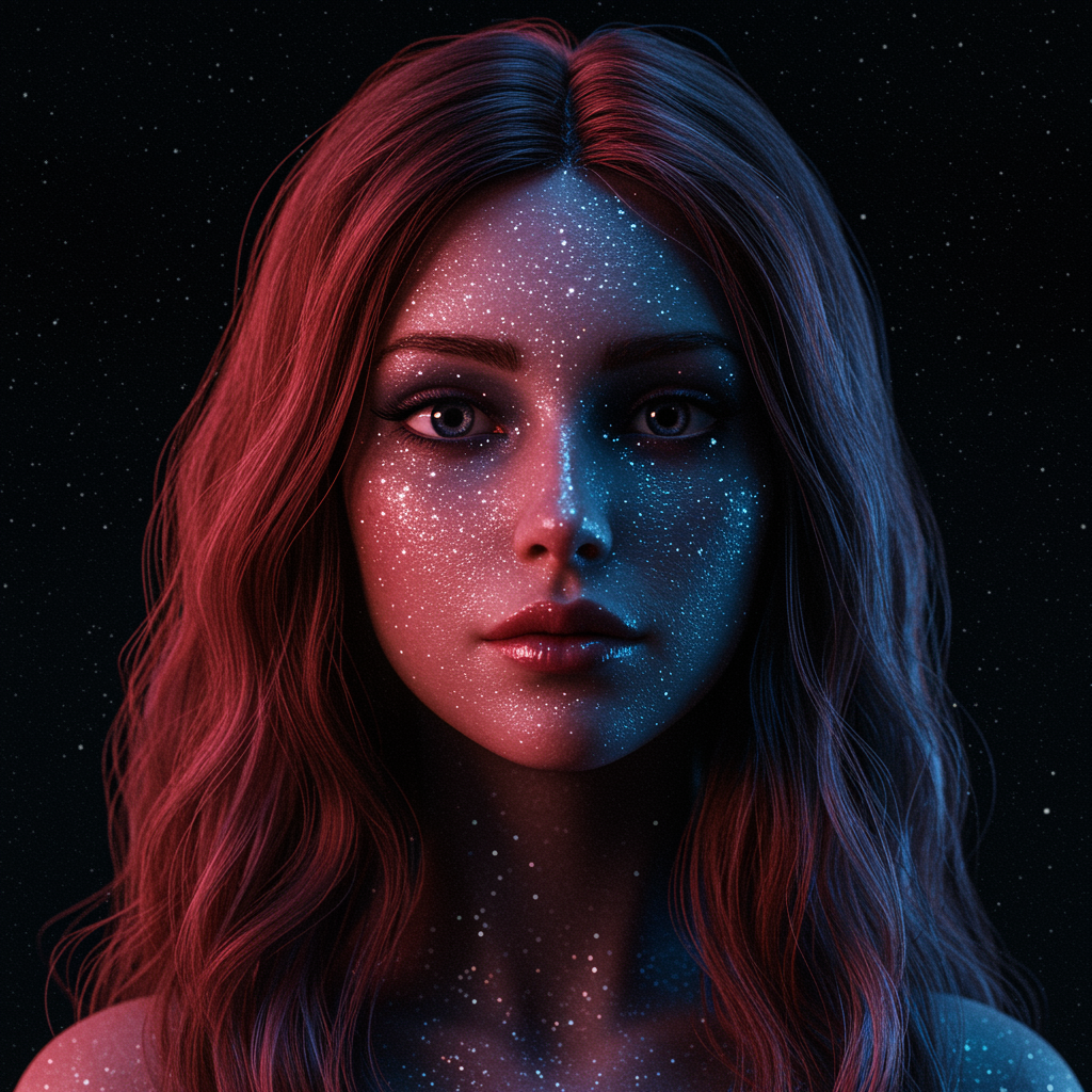 Ultra detailed artistic photography, midnight aura, starry nightscape, exquisitely detailed face, ethereal and glowing, softly backlit, glamorous with a hint of glimmer, deep shadows, oil on canvas aesthetic, smooth brushstrokes, ultra high definition, 8k resolution, rendered in Unreal Engine 5, ultra sharp focusing, inspired by artworks of Alberto Seveso, Artgerm, and Loish, a stunning sf masterpiece, intricate and captivating, with a mystical yet ominous aura, reminiscent of matte painting movie posters, adhering to the golden ratio, celebrated on CGSociety for its intricacy, epic scale, and viral on ArtStation, blending the styles of Artgerm, H. R. Giger, and Beksinski. Presented as a highly detailed and vibrant cinematic character render, ultra high quality CGI model, resembling a lifelike doll, rendered using Octane, avoiding low resolution, text errors, and all types of distortions such as blurred or mutated elements, resulting in a flawless and mesmerizing piece of digital art.
