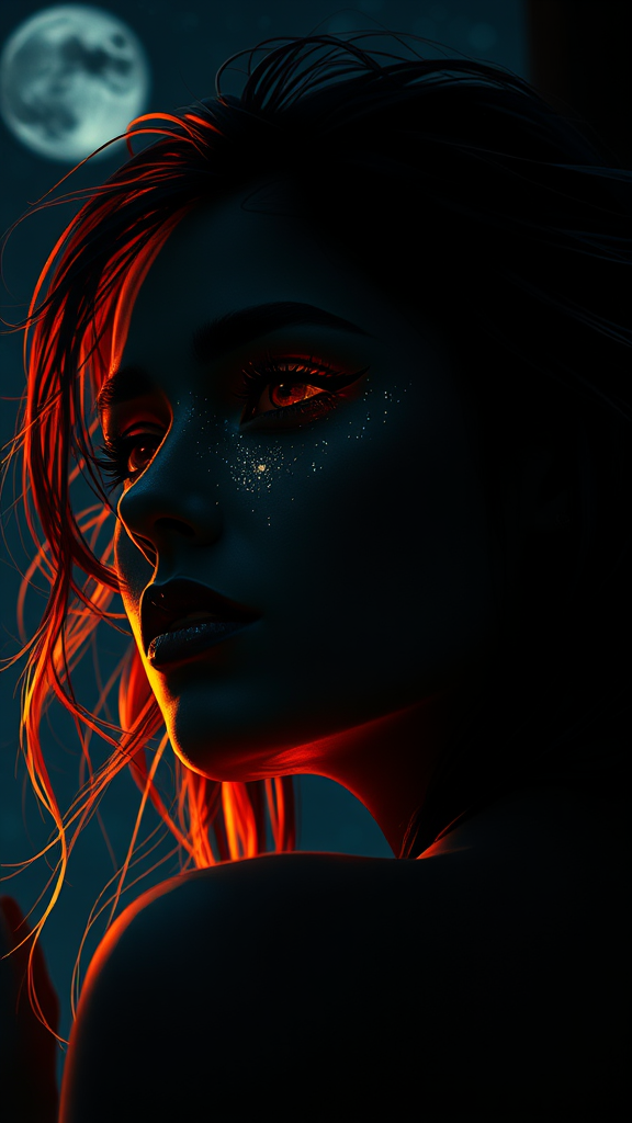 Ultra detailed artistic photography showcasing a midnight aura under the night sky, featuring a beautifully detailed and dreamy face. The subject is backlit, radiating a glowing, glamorous glimmer amidst the shadows. The artwork mimics oil on canvas with smooth brush strokes, presented in ultra-high definition 8k, reminiscent of Unreal Engine 5's capabilities, with ultra sharp focus. This intricate artwork masterpiece channels the styles of Alberto Seveso, Artgerm, and Loish, merging fantasy and reality. The cinematic composition, echoing an ominous matte painting movie poster, adheres to the golden ratio. It's trending on CGSociety and ArtStation, with influences from the surreal imaginations of H. R. Giger and Beksinski. The piece highlights vibrant, highly detailed elements in a production-quality cinematic render, maintaining character integrity within its epic portrayal. Though playfully exploring distorted anatomy themes like extra fingers and multiple faces to evoke curiosity, the work remains an integrated artistic expression.