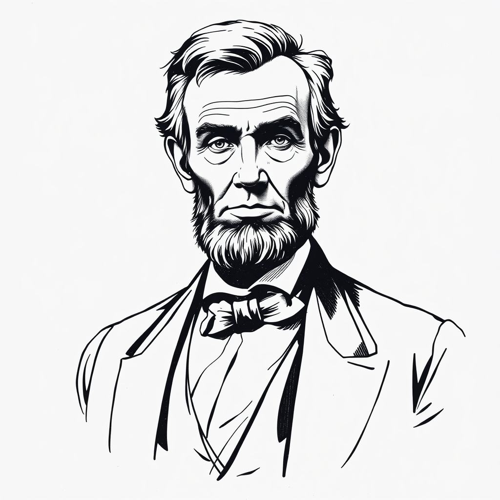 ultra-detailed ink illustration abraham lincoln portrait on plain white background with subtle creative elements for a unique twist