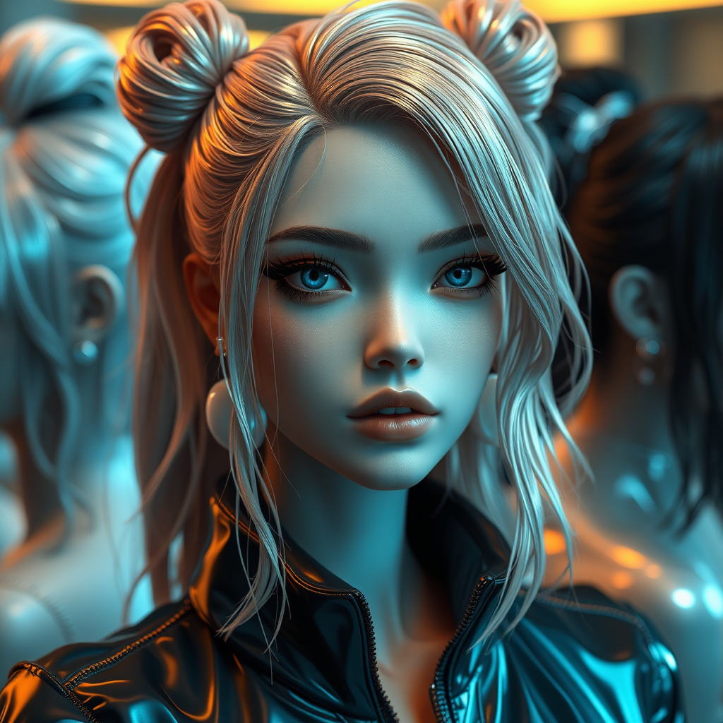 Ultra high quality, flawless masterpiece, exquisite art, 8K resolution, diverse hair styles, iridescent pearl effect, futuristic cyberpunk aesthetics, cutting-edge fashion trends, high-performance materials, HD clarity, intricate detailing, advanced C4D techniques, immersive 3D experience, octane rendering for stunning visuals, ray tracing for depth and realism, elaborate details, dynamic animated lighting, OC renderer, 8k precision.