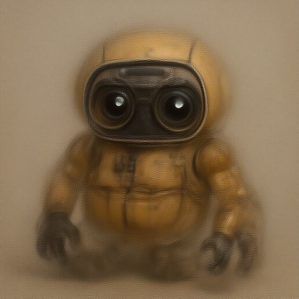 Ultra-realistic detailed photorealistic image of a charmingly cute nerdy baby Wall-E, featuring 16k resolution with HDR effects and raytracing, incorporating slight blur for effect, sketches and low-resolution qualities. The design purposefully includes quirky anatomy and endearing proportions with elements of normal and exaggerated proportions. The composition retains a subtle out-of-focus aesthetic, highlighting its adorable dorky charm.