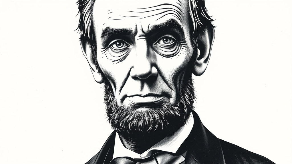ultra-realistic illustration, ink, Abraham Lincoln, detailed face on blank background