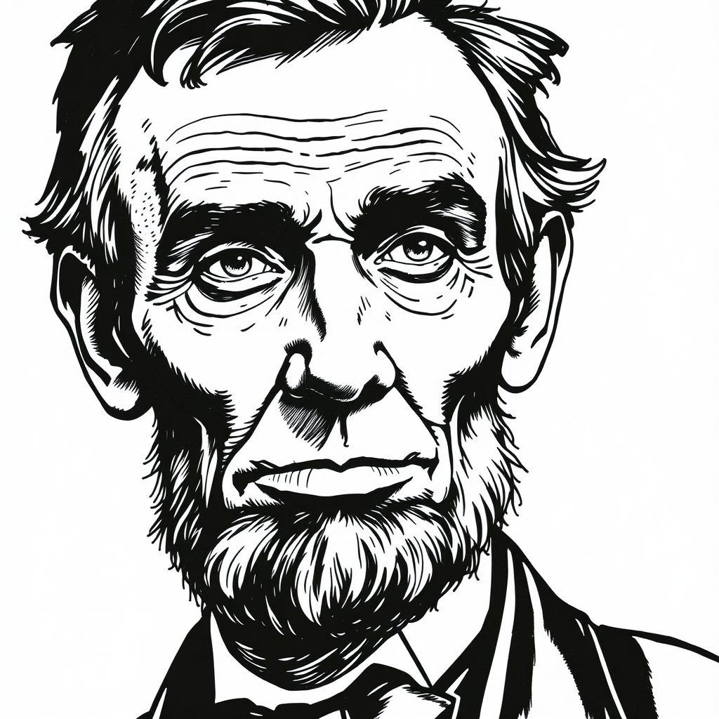 ultra-realistic ink illustration, abraham lincoln, detailed facial features, portrait on a plain white backdrop