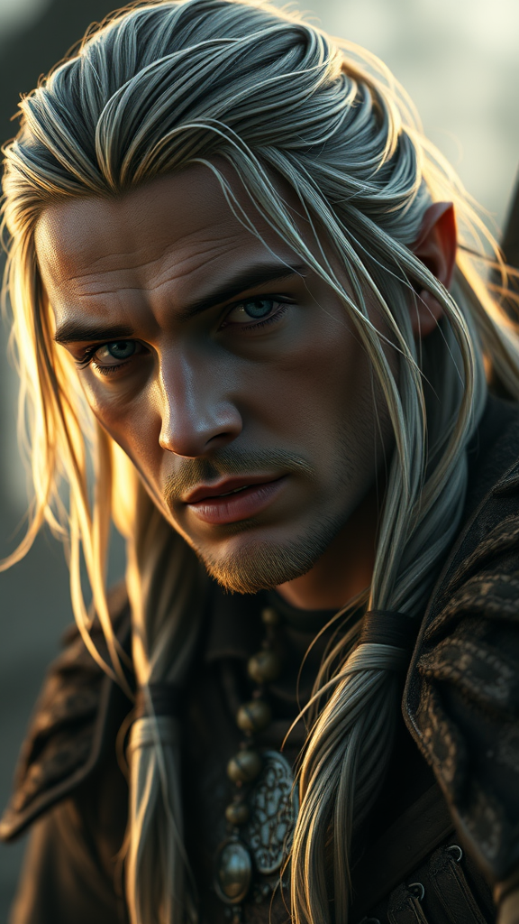 Ultra realistic portrait of Legolas from Lord of the Rings, dramatic light, subtle dawn hues, cinematic atmosphere, weathered and determined expression, shot from a low angle, popular on artstation, 4k resolution, hyper realistic with intense detail, rendered in Unreal Engine 5, cinematic, an artistic masterpiece with a touch of fantasy embellishments.