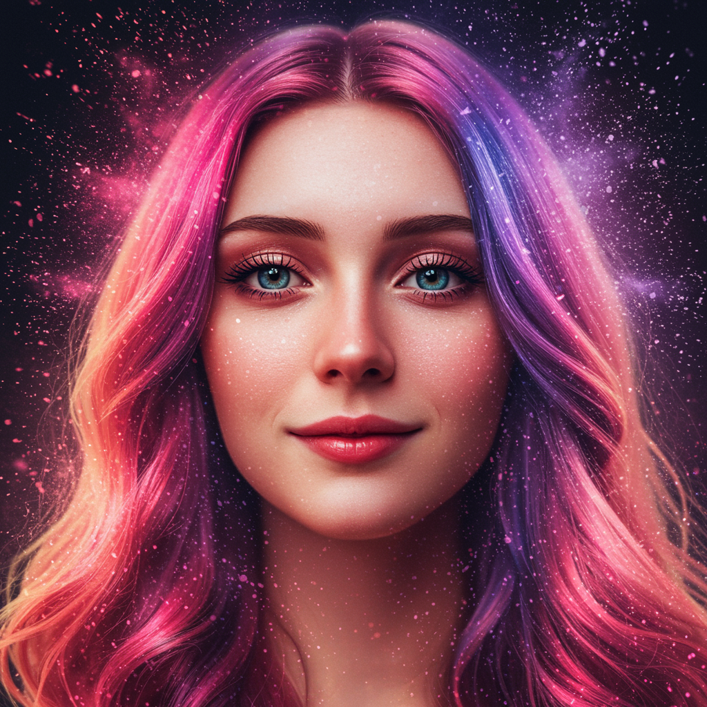Ultra realistic portrayal of Scarlett Leithold exuding cosmic energy, with vibrant color explosions and a beautifully symmetrical face. Her expression is a blend of nonchalance and kindness, complemented by realistic, captivating round eyes. The artwork is tone mapped and intricately detailed, embodying elegance and sophistication. It captures the essence of a digital painting, echoing the styles of ArtStation, concept art, and artistic elements reminiscent of Artgerm, Greg Rutkowski, and Alphonse Mucha. The image boasts a smooth, sharp focus and conveys a dreamy, magical atmosphere with a 4k and 8k resolution.