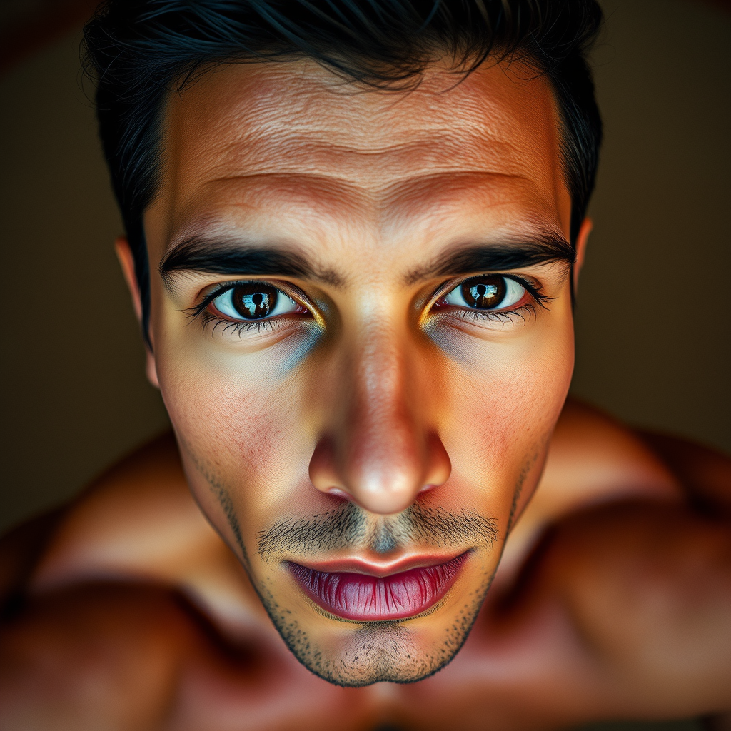 Ultra-Wide Perspective capturing an elegantly handsome Mexican man, flawless skin, muscular physique, meticulously detailed facial features, strikingly handsome with perfect eyes and impeccably round pupils, enhanced with ray tracing for depth, anatomically correct structure, illuminated by dramatic lighting, subtle yet defined details, executed in HDR, 4K and 8K resolution, echoing the styles of Edmund Blair Leighton, Brom, Charlie Bowater, with facial elements reminiscent of Tom Bagshaw, and portrait qualities inspired by Sargent.