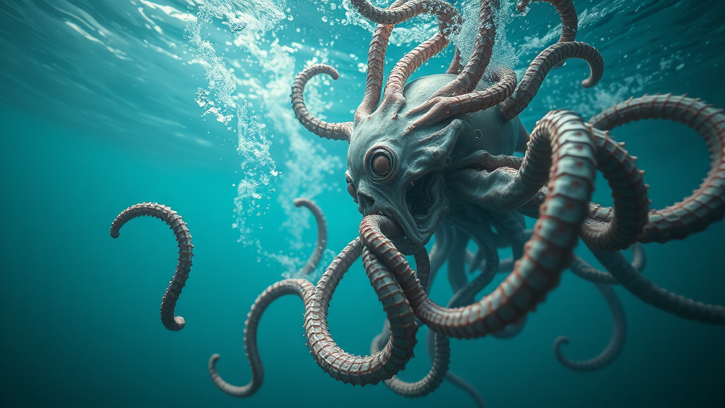 Underwater scene, close-up zoom focus, absurd elements, flowing waves and cascading water, entwined tentacles, atmospheric smoke, high-resolution 4k and 8k textures, cinematic composition, intricate side view details, low quality anatomy, abstract proportions, blending 3D and 2D aesthetics, digital artwork with sketch-like quality, peculiar limb arrangements, surreal mutations, with an emphasis on unusual and distorted anatomy, blurred glossy visuals, glitch-like effects, Asian influences, experimental human form with additional limbs, abstract body structures, and an ethereal, dreamlike quality.