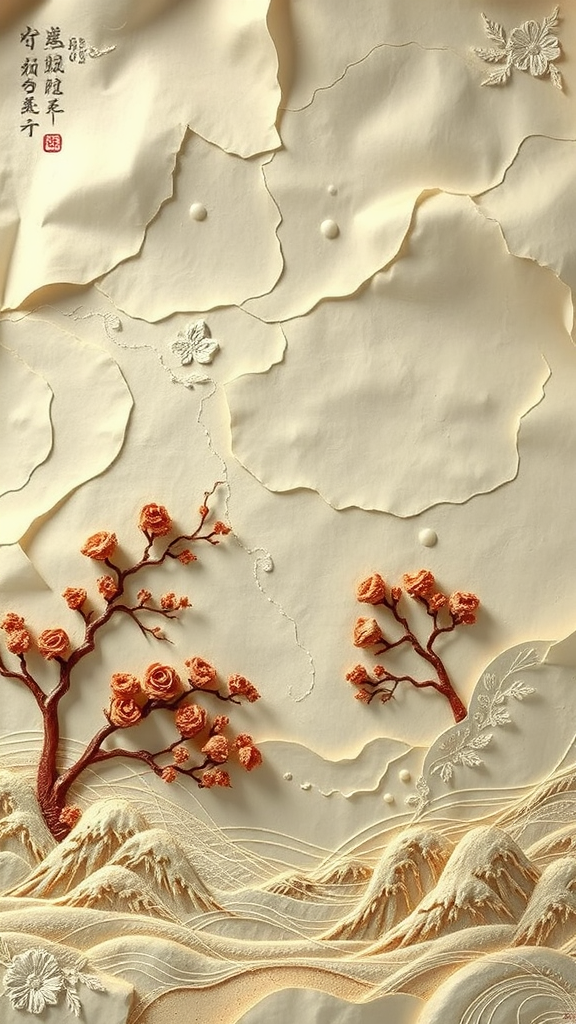 Unfurled parchment scene: five embossed art pieces, pop-up effect, oil masterpiece: three complex details, soft volumetric illumination: two --aspect ratio 3:2.