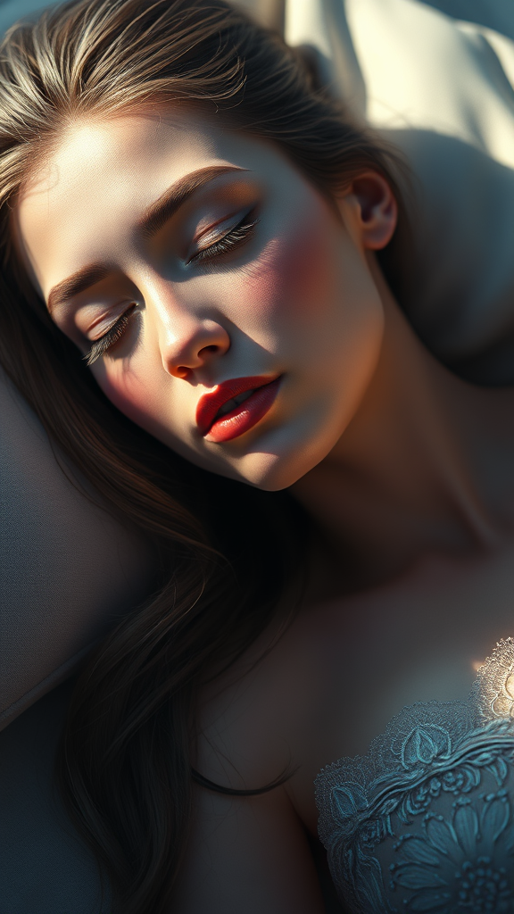 unity 8k wallpaper ultra detailed beautiful and aesthetic perfect lighting dynamic pose dynamic angle lipstick slim body medium breasts detailed background realistic solo perfect detailed face detailed eyes highly detailed blush bolster sleeping serene ambiance intricate textures delicate features flawless complexion captivating gaze ethereal surroundings serene environment harmonious color palette tranquil atmosphere enchanting expression alluring composition serene elegance refined artistry enchanting details serene poise captivating charm tranquil beauty sophisticated aesthetic gentle repose harmonious details serene allure.