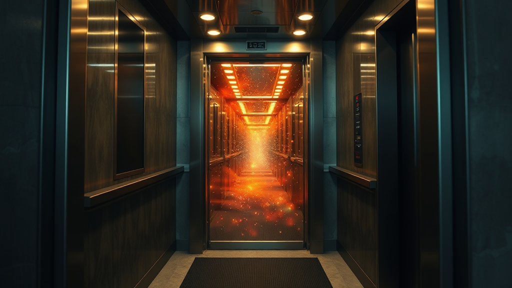 Unleash the unexpected by crafting a tale of an unremarkable elevator ride that transforms into an extraordinary journey through time and dimensions, revealing hidden layers of reality unseen in everyday life.