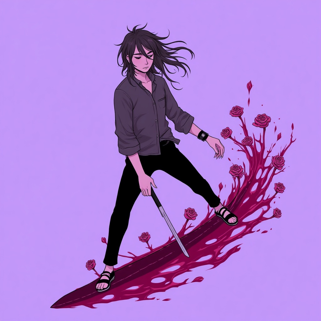 Upon the razor's edge I tread, every step spilling the blood of sorrow, cutting into flesh and bone. Behind me lies a trail of roses, untouchable until the debt is settled. Pay with tears, march on for eternity. Surrender my flesh, placate the demons. No matter the method, I will never be the same. Lavender hued.
