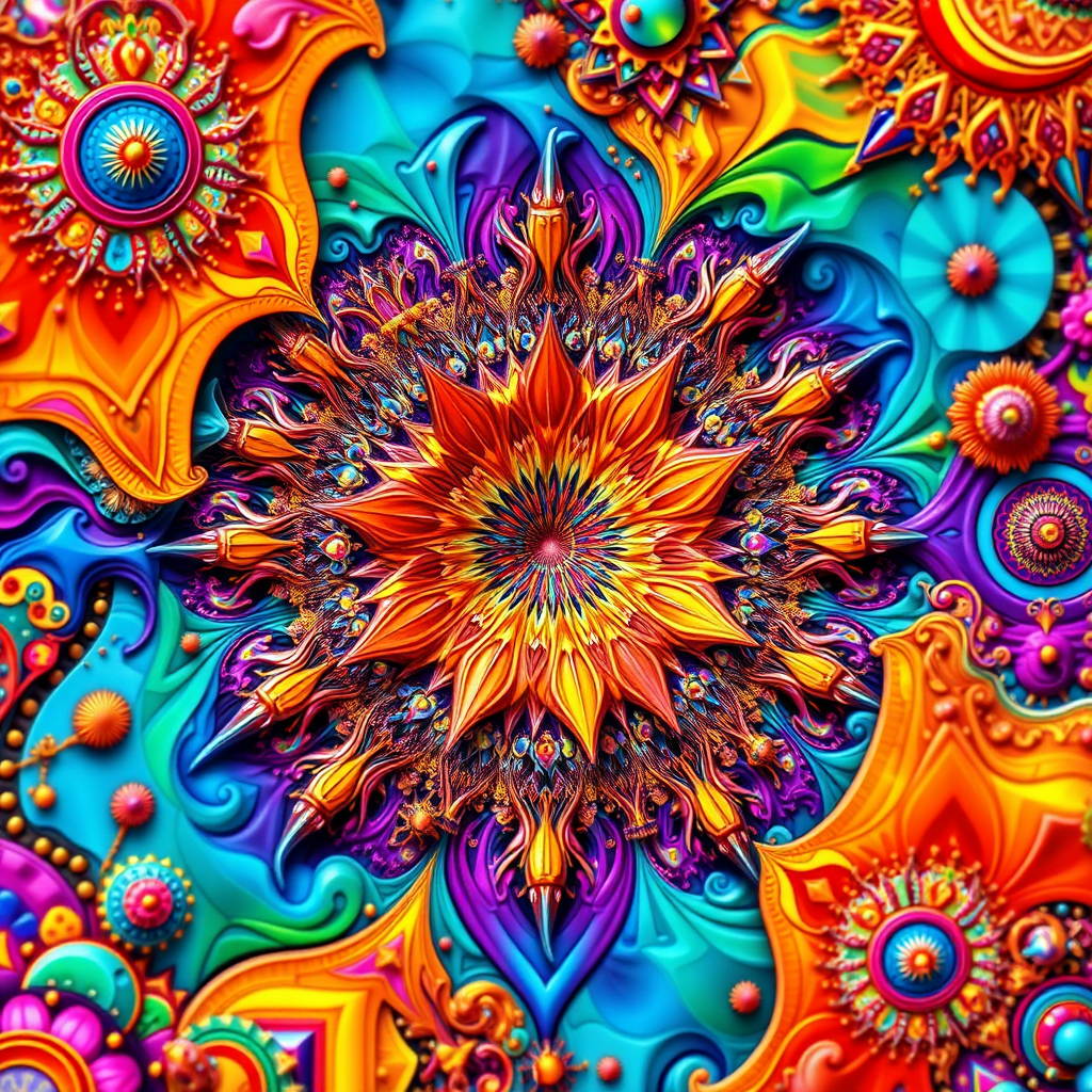 Use this prompt as major inspiration: extreme detailed, colorful, highest detailed, optical mixing, playful patterns, lively texture, rich colors, unique visual effect, vibrant, highres, intricate. Modify creatively: incorporate elements like vivid geometric shapes, surreal abstract forms, dream-like scenery, evoke a sense of wonder with high contrast and dynamic compositions, maintain a balance between chaos and harmony, explore visual storytelling, and embrace unusual character designs.