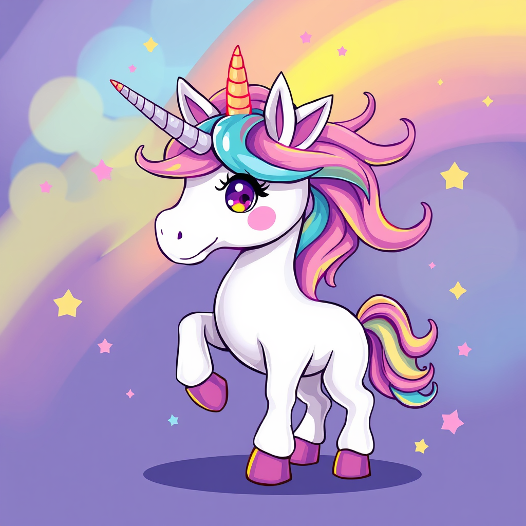 Vibrant and enchanting illustration of a whimsical unicorn in a delightful array of pastel and bright colors, exuding charm and cuteness, with a playful clip art style reminiscent of artstation's imaginative artworks.