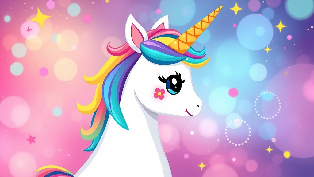 Vibrant and whimsical illustration of a delightful unicorn in a playful clip art style, featuring a kaleidoscope of colors that evoke a sense of joy and wonder, with charming and adorable details, reminiscent of artstation's captivating art pieces.