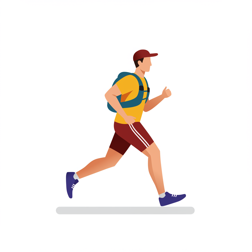 Vibrant tourism illustration featuring a runner, bursting with diverse colors against a clean white backdrop, emphasizing simple shapes and flat design. The minimalist style adds a sense of freshness, capturing the energy and excitement of travel with a unique twist.