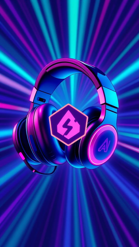 Vibrant vaporwave aesthetics with a polished, high-resolution graphic render of a sleek pair of headphones intertwined with a dynamic game icon, embodying the essence of AppGameKit. Seamlessly integrated logo design showcases a futuristic 16k visual, merging nfixer and nrealfixer elements for an elevated digital experience.