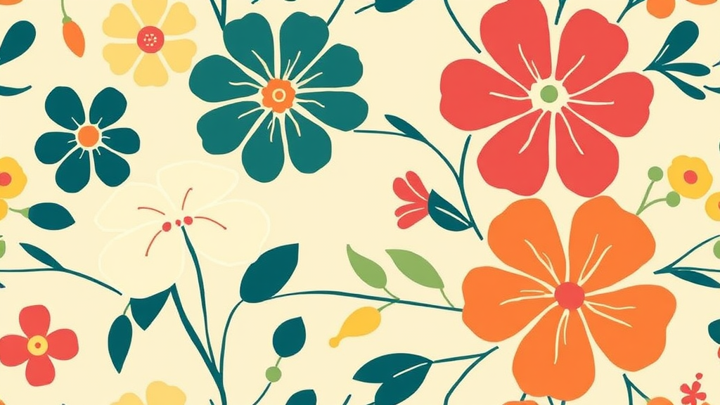 Vintage Floral :: mid-century pattern :: vibrant hues :: minimalistic :: vertical orientation :: enhanced detail :: balance