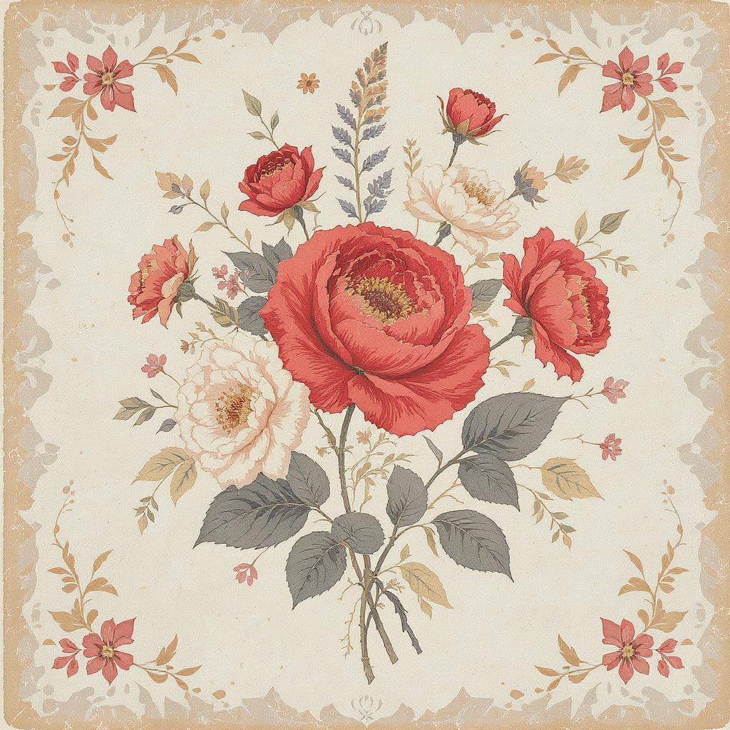 Vintage floral motif :: nostalgic design elements :: vibrant palette :: minimalist approach :: 2:3 aspect ratio :: enhanced detail :: smooth texture