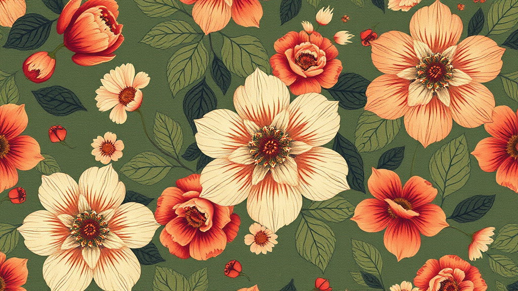 Vintage floral motif :: nostalgic pattern design :: vibrant hues :: minimalist style :: portrait orientation :: high detail :: soft texture