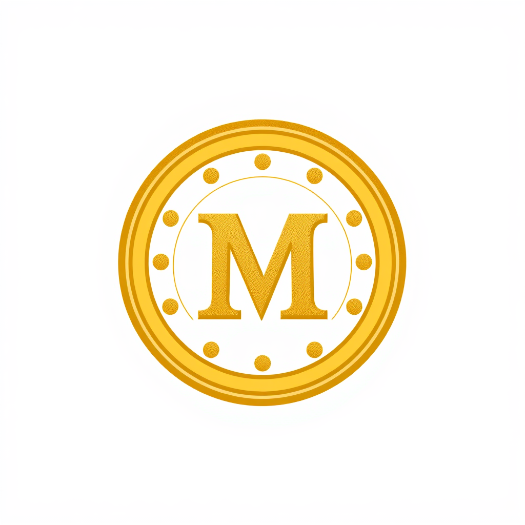 Vintage-inspired logo featuring the iconic letter 'M' centered on a coin, designed with a warm yellow color palette and enhanced by subtle gradients, set against a clean white background.