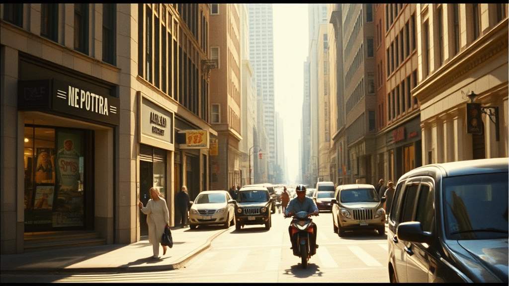 Vintage-inspired urban scene captured on Kodak Portra film, showcasing bustling city streets under the gentle glow of daylight, with subtle creative nuances highlighting the charm and energy of everyday life.