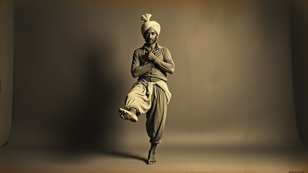 Vintage photograph of an Indian man in a turban with elevated legs, featuring distorted shapes, blending elements of contemporary Middle Eastern and North African art from 1860 to 1969, evoking a moody and introspective atmosphere, minimalist and uncluttered, resembling woven photographs, with a textured, crumpled appearance.