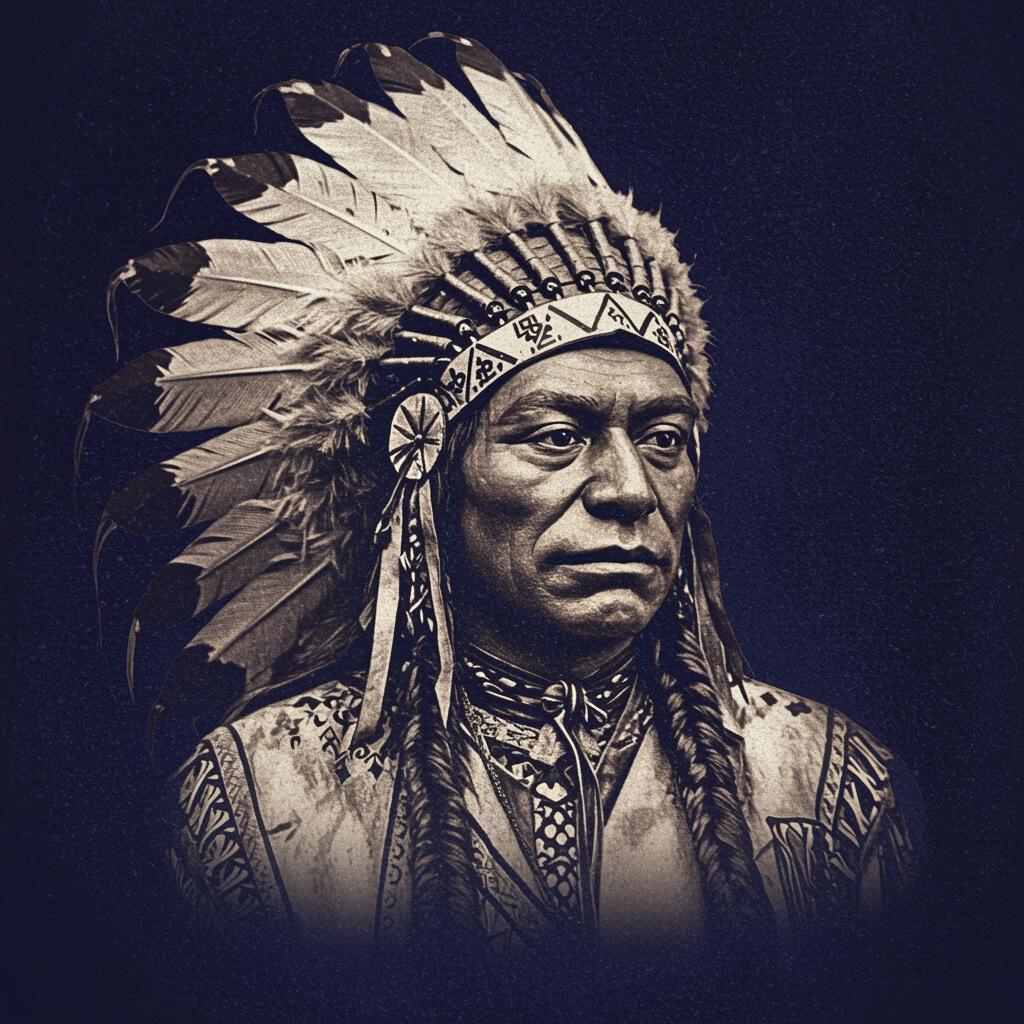 Vintage sepia-toned lithograph of Chief Pepe from the Elk Ridge collection, crafted with dark indigo and silver hues, reminiscent of neo-mosaic style, presented in 32k ultra-high definition. The piece, captured through the technique of wet plate negatives, offers edgy political commentary with intricate detailing, maintaining an aspect ratio of 179:230 and a heightened level of quality and stylization.