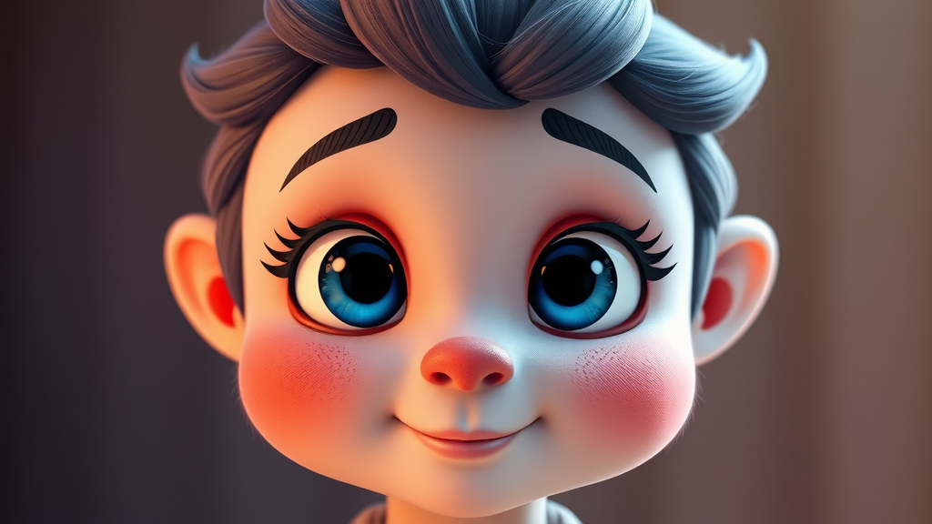 Vivid portrait of a character in a slightly muted palette, conveying a Disney-esque charm, with a 3D-rendered appearance of exceptional quality, as if captured in 8K resolution. Emphasizing front lighting and ultra-detailed features, the image embraces a whimsical, cartoon-like style. Utilizing soft lighting, this digital painting brings to life an enchanting subject, reflective of trending concept art on Artstation, reminiscent of the imaginative works by Peter de Sève and Carter Goodrich.
